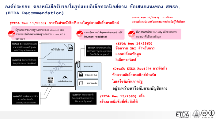 2. ต้องผ่านมาตรฐาน ที่ ETDA (สพธอ.) กำหนดไว้ ได้แก่ e-Document, e-Signature, Digital ID, e-Evident, e-Government